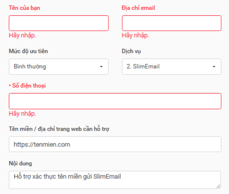 * LƯU Ý: nhập ĐÚNG & ĐỦ thông tin để đội ngũ hỗ trợ SlimEmail liên hệ hướng dẫn bước tiếp theo